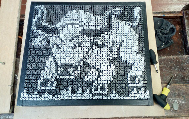 Когда был объявлен конкурс «Техноелка«, ученик и учитель присоединились к этому проекту и из множества номинаций выбрали»символ 2021 года». Около недели «пропадали» они в мастерской: используя технику создания картин из шурупов, работали над панно «металлический Бык». Его название соответствовало как содержанию (на изделии – изображение могучего животного), так и материалу – в ходе работы было использовано 2 тысячи саморезов. Панно размером 50х50 см признали лучшим в районе, оно успешно выдержало конкуренцию в Витебске и попало в Минск на заключительный этап конкурса. Он, кстати, впечатляет своей масштабностью: в творческом соревновании мастеров приняли участие 59 учреждений дополнительного образования детей и молодежи, 140 профессионально-технических училищ, колледжей и лицеев и 162 школы. Всего было представлено 699 экспонатов в 10 номинациях. «Символ 2021 года» прислали 70 конкурсантов. Диму Червинскому за панно «металлический Бык» представительное жюри присудило в личном первенстве 1-е место и наградило дипломом и степени.