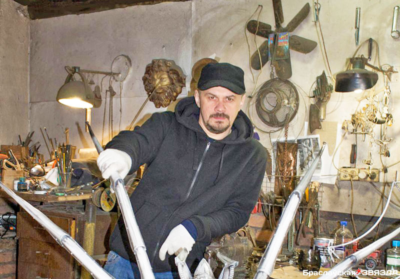 В истории материальной культуры сохранилось много удивительных изделий из металла: литые колокола и скульптуры, кованые ограждения и наборы оружия, сосуды, светильники и многое другое. В каждый такой предмет вложены трудоемкие старания мастера-ремесленника, обладавшего навыками и приемами обработки этого материала и умевшего подчеркнуть в изготовлении его особенности. Современные технологии заменили многие ручные приемы обработки металла промышленными способами, но во время создания искусственных, уникальных и необычных предметов сохранилась и ручная работа. Без применения станков колдует с металлом и Браславский ремесленник Александр Малашенко.