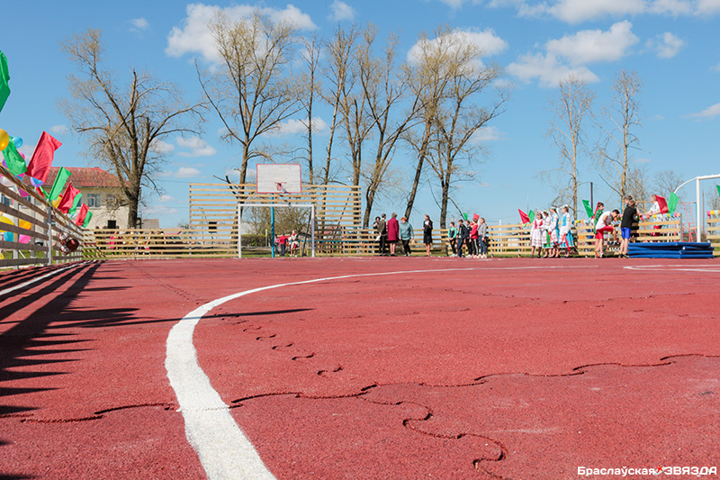 В итоге за счет средств районного бюджета и субботника в Видзах на территории пришкольного стадиона возвели заасфальтированную площадку с мягким покрытием и ограждением. Примечательно, что сторонняя организация (ДРСУ-142) участвовала только в самых сложных работах: дорожники подготовили территорию и положили асфальт. Остальное было сделано силами самого учреждения образования.