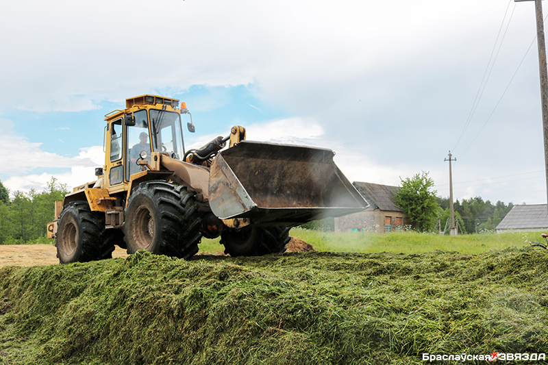 – Пачалі закладваць траншэі ля фермы ў Барунах, – расказвае А. Пруднік. – Яны у нас невялікія – па 320 – 350 тон. Першыя закладалі з падкоскі пашы, цяпер узяліся за тыя палі, дзе лепшы травастой. Праўда, пакуль ён нас не радуе там: летась бралі па 300 тон за дзень, сёлета – удвая менш.
