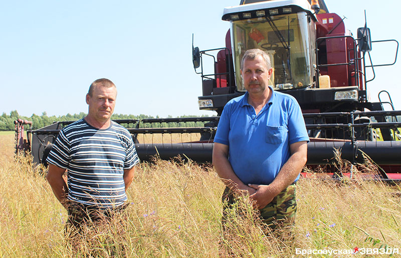 У гарачую пару масавага жніва ў гаспадарцы плануюць задзейнічаць 6 камбайнаў, але пакуль што камбайнеры займаюцца корманарыхтоўкай, на завяршальнай стадыі рамонту яшчэ толькі адзін карабель палёў, які выйдзе малаціць азімы рапс. Свірэпіца ж паспела, падышлі тэрміны яе ўборкі. Таму на просьбу старшыні таварыства Аляксандра Белюна дапамагчы на некалькі дзён тэхнікай адгукнуўся кіраўнік СВК «Маяк Браслаўскі» Рамуальд Шукель, які прыслаў два камбайны. ■