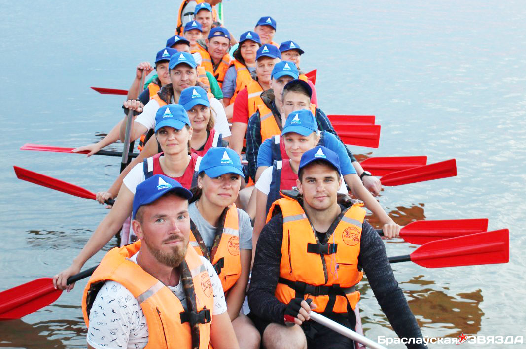 Многие браславчане и гости нашего города не раз имели возможность видеть, как, рассекая водную гладь Дривят, под громкий стук барабана плывут грациозные лодкидраконы. На борту удивительного драгонбота вмещается 20 гребцов, барабанщик, который отбивает им темп, и рулевой. Редкие для Беларуси каноэ появились в Браславе в прошлом году благодаря проекту международной технической помощи «Поддержка предпринимательства в сфере туризма на местном уровне в Республике Беларусь», реализуемого ПРООН. С тех пор сотрудники РФСК «Дривятич», на балансе которого закреплены чудо-лодки, да и, как оказалось позже, некоторые браславчане с нетерпением ожидали первого выхода на воду. Он состоялся в начале июня. В течение полутора месяца заинтересованные этим видом спорта местные жители тренировались дважды в неделю. Сегодня уже сформировано несколько команд, которые регулярно оттачивают свои навыки гребли на драгонботах. Мы поинтересовались, что же так привлекает сюда взрослых занятых людей и какие эмоции они испытывают тренируясь?