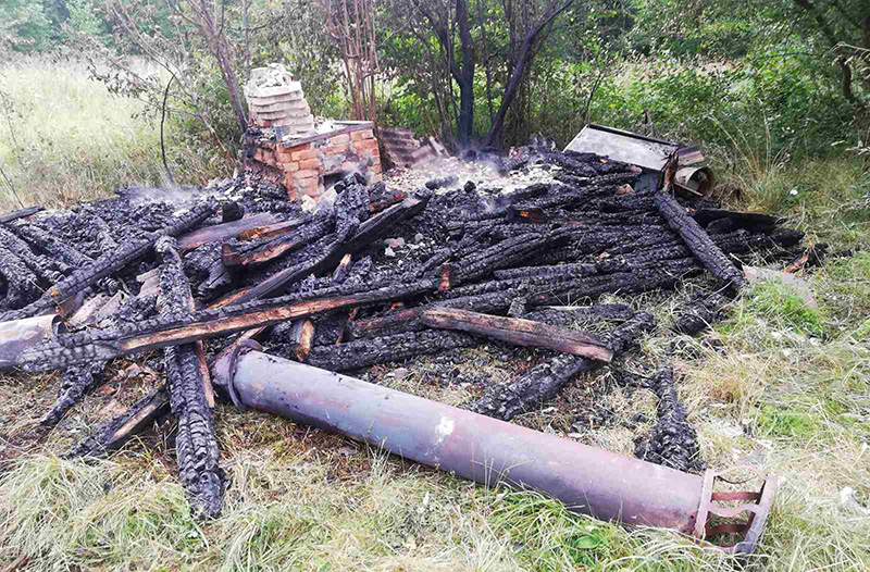 14.08.2021 г. в 16-36  поступило сообщение о пожаре бани в д. Станковичи Браславского района. В результате пожара уничтожена баня. Причина пожара устанавливается. ■
