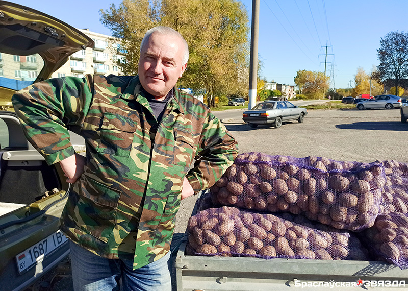 Браславчанин Павел Ворах чаще всего стоит со своей продукцией на площадке возле магазина на улице Октября. Его главный товар – мед с личной пасеки, а картофель, яблоки и груши продает попутно. Он поделился своим опытом этого года по выращиванию картошки.