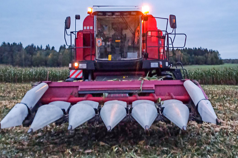 Хотя урожайность культуры в этом году небольшая – в среднем 55,9 ц/га, местами молотят по 75 ц/га, но агроном рассчитывает получить тысячу тонн зерна в амбарном весе, что будет хорошим подспорьем хозяйству с фуражом. Уборка кукурузы ведется двумя комбайнами. На этой работе задействованы опытные механизаторы Антон Войтанец и Валерий Анисимов. Если погода позволяет, комбайнеры работают на поле вплоть до 9 часов вечера. ■