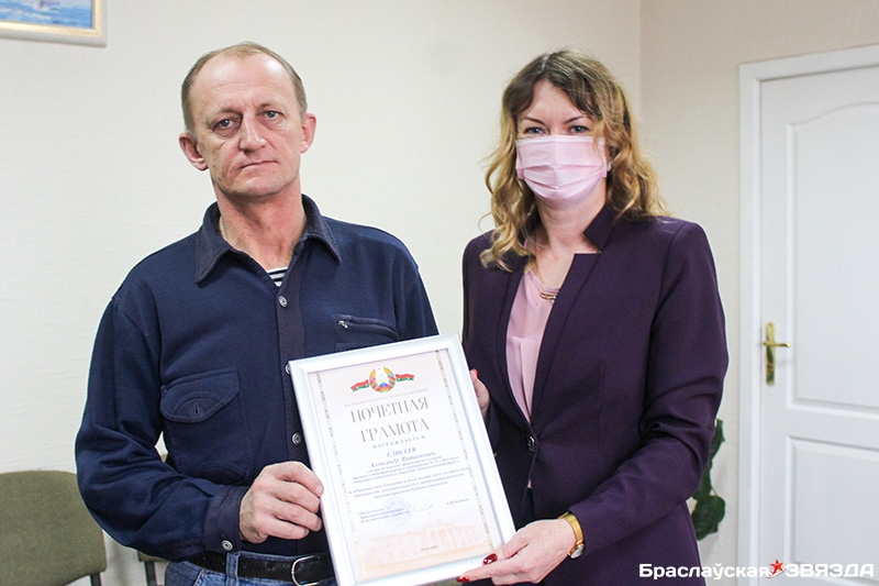 Традиционно накануне профессионального праздника чествуют лучших работников. Не стал исключением и День автомобилиста и дорожника. В пятницу, например, от имени местной власти филиал Витебскоблавтотранса АТП № 18 посетила заместитель председателя райисполкома Елена Бабинская. За добросовестное исполнение служебных обязанностей, дисциплинированность и высокие производственные показатели она вручила Почетные грамоты райисполкома слесарю по ремонту автомобилей Александру Елисееву и ведущему экономисту предприятия Елене Плиско, а также благодарности председателя райисполкома – слесарю по ремонту автомобилей Сергею Шулейко и водителю грузовой службы Владимиру Туронку.