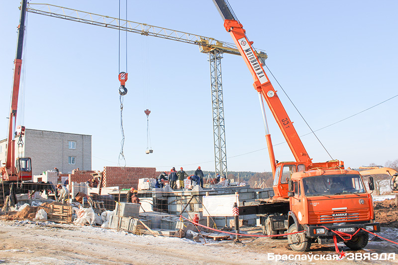 В 2021 г. в Браславе не было новоселов в многоквартирных домах. Строители только осенью заложили фундамент под сорокаквартирный жилой дом площадью 2 180 м². Сейчас на строительной площадке с утра до вечера кипит работа, чтобы уже летом жильцы получили ключи от своих квартир.