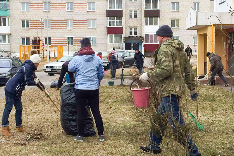 В объявленном районном субботнике принимали участие не только работники организаций, а и просто жители населенных пунктов Браславщины. Например, на уборку своей дворовой территории дружно вышли жильцы многоквартирного дома № 42 по ул. Октября райцентра. Его активисты предварительно договорились с «Браслав-коммунальником» о технике, поэтому собранный вокруг дома и из подвальных помещений мусор сразу попадал в тракторный прицеп.