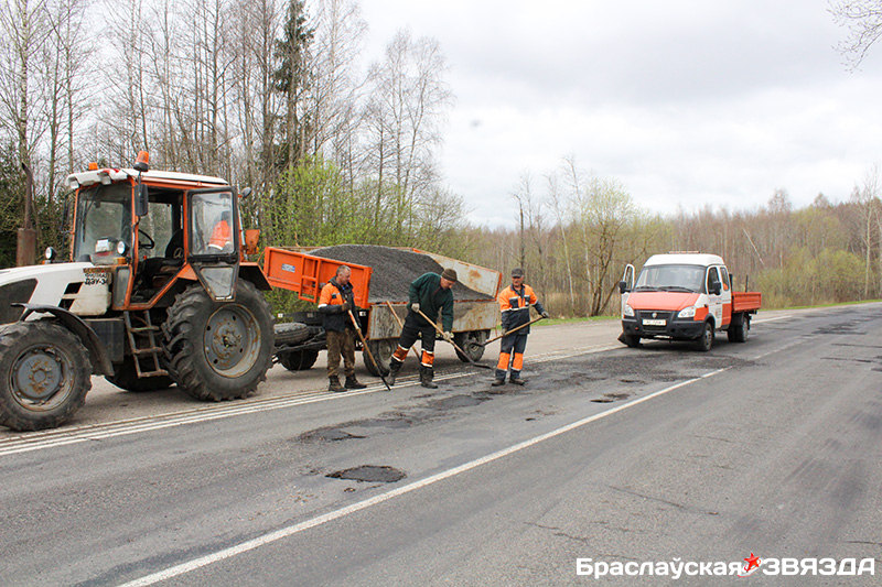 На дорогах Браславщины продолжается ямочный ремонт: будут уложены сотни тонн асфальта