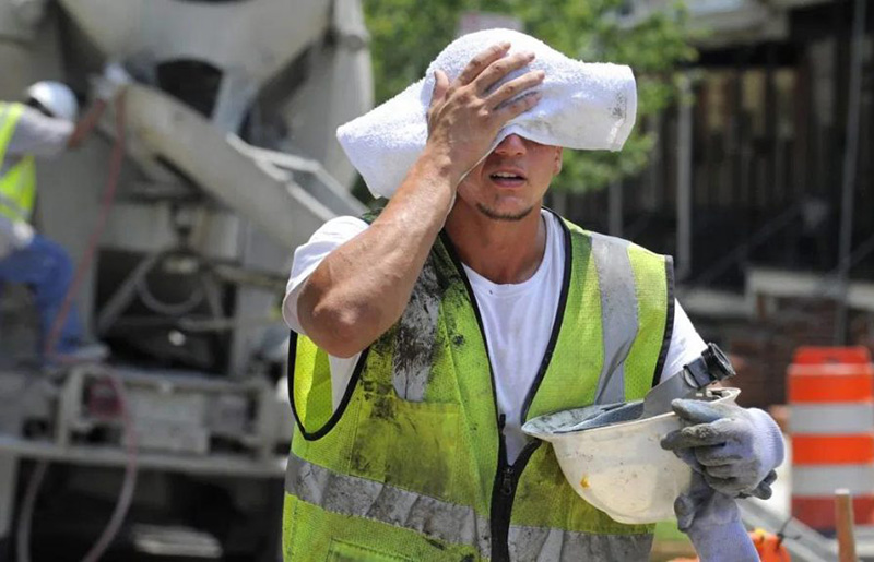 – обучение работников признакам тепловой болезни и способам оказания первой помощи. Признаками теплового истощения являются приступы дурноты или головокружения, усиленное потоотделение, тошнота и рвота, слабость и быстрое сердцебиение. Симптомы теплового удара – красная, горячая, сухая кожа, судороги, спутанность и потеря сознания. Обморок и спутанная речь – чрезвычайная ситуация, при которой нужно вызывать медиков;