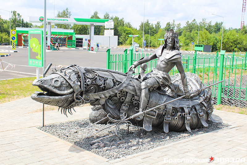 Привлекает внимание АЗС и своим дизайнерским исполнением, а перед въездом на ее территорию всех встречает необычный арт-объект «Дзіўны Браслаў», созданный известным белорусским скульптором Владимиром Каноником. Владимир уже более 10 лет занимается художественными изделиями из железа. В основу же браславского собирательного образа арт-объекта он положил обитателя озерной системы – величественного угря, собранного из металлолома и бывших в употреблении автозапчастей.