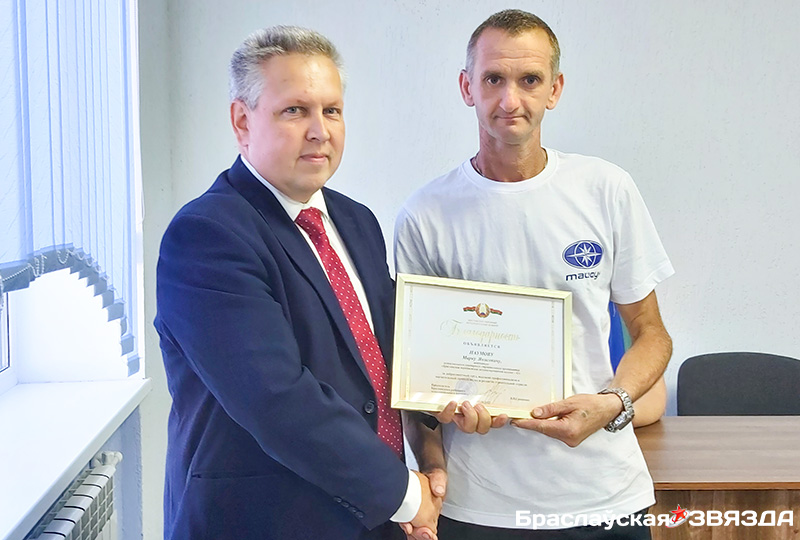 Поздравил местных строителей с праздником и заместитель председателя Браславского райисполкома Пётр Белусь, который вручил Благодарность штукатуру Марку Наумову. Профсоюзную грамоту областного уровня из рук председателя Браславского объединения профсоюзов Вероники Синькевич получил также штукатур Андрей Опеченок. ■