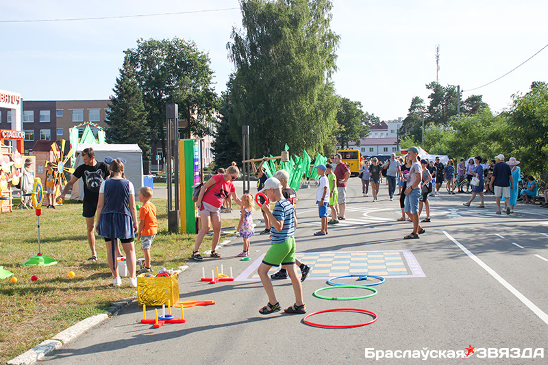 Одним словом, на улице Стадионной несколько часов бурлила веселая толпа: дети и взрослые переходили от одной площадки к другой, охотно участвовали в предлагаемых забавах. Затем они собрались возле сцены, чтобы насладиться великолепной концертной программой «Для всей семьи», подготовленной артистами РЦК и талантливыми воспитанниками ДШИ и СШ № 1 имени А. М. Жданова. Между творческими номерами были подведены итоги работы учреждений образования и культуры района по организации детской летней занятости, отмечены лучшие из них, а также награждены наиболее энергичные и активные ребята Браславщины.