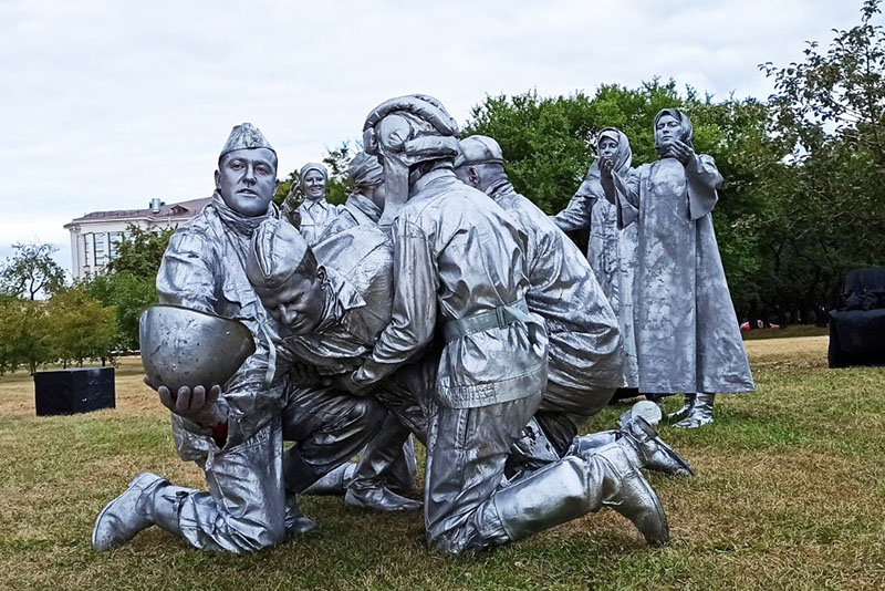 Так, Браславские «живые» скульптуры были задействованы в торжествах по случаю 20-летия молодежной организации БРСМ. Основные мероприятия проходили в Минске. Театр миниатюр на одной из сценических площадок выступал с патриотической зарисовкой «Память, застывшая в веках».