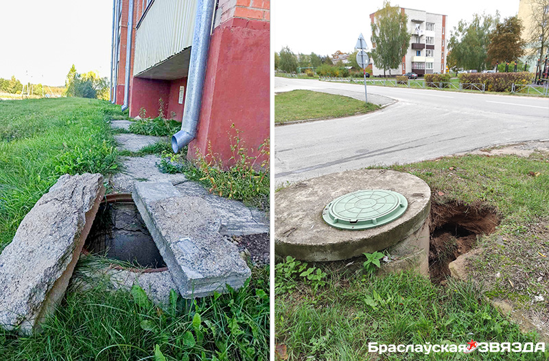 А вот незакрытый дренажный колодец за домом № 36 по той же улице – уже не следствие стихии или «вчера» образовавшейся проблемы. Крышка у колодца здесь отсутствует давно, и в «Браслав-коммунальнике» об этом знают, потому как уже много месяцев вместо люка двухметровая яма сверху накрыта кусками старых тротуарных плит. По-видимому, именно так в службе решили ликвидировать эту проблему. Да, как вынужденная мера, возможно, это был выход из ситуации, но, как оказалось, нет ничего более постоянного, чем временное.