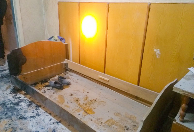 В результате пожара в номере гостиницы повреждены кровать и матрац, закопчены стены и потолок. По данному факту проводится проверка. Предполагаемая причина пожара – неосторожное обращение с огнем при курении. ■