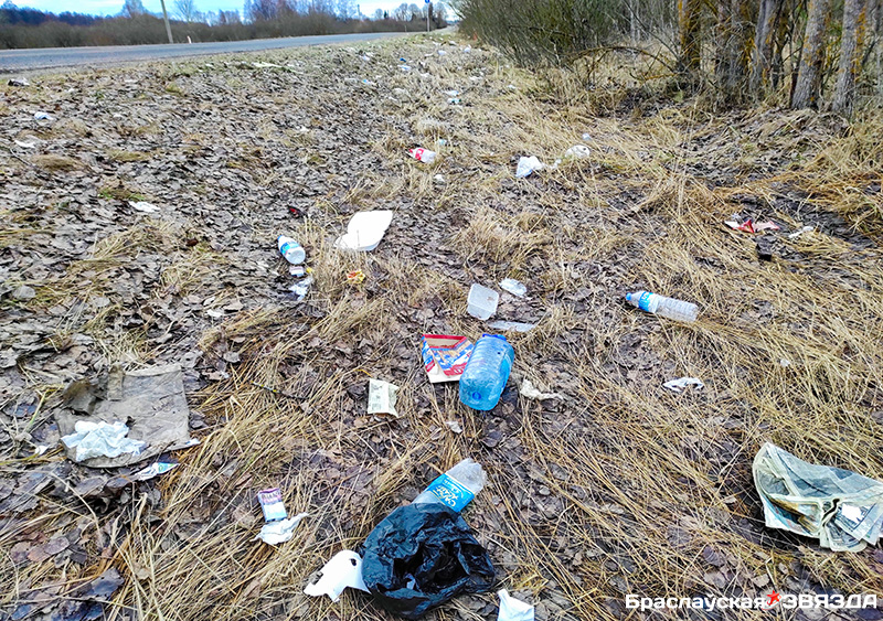 Именно такая ситуация сложилась вблизи пограничного перехода «Видзы» вдоль дороги из горпоселка в сторону литовского Твярячуса. Здесь обочины не просто заросли мусором: они загажены в буквальном смысле этого слова.