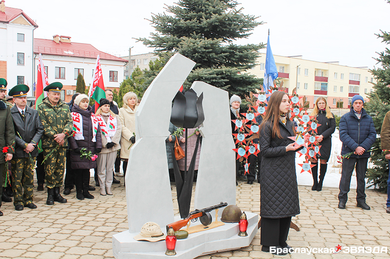 Под звуки афганских песен в сквере начали собираться ветераны боевых действий, представители местной власти, общественных объединений, трудовых и служебных коллективов, школьная молодежь, горожане. Ведущие памятного мероприятия вспомнили подвиг воинов-интернационалистов, отметили хрупкость мира и предложили слово председателю Браславского райисполкома.
