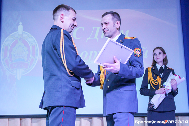 Браславские милиционеры принимали поздравления от руководства района, а также представителей других силовых структур. Слова благодарности в этот день прозвучали и для ветеранов органов внутренних дел. В своем поздравительном обращении к коллегам Александр Мяделко, начальник РОВД, поблагодарил всех работников отдела за безупречную службу, много внимания он уделил молодым специалистам, которые только пришли служить. А. Мяделко подчеркнул, что видит их заинтересованность и грамотность, посоветовал им быстро расти в профессиональном плане и брать максимум от опытных коллег.