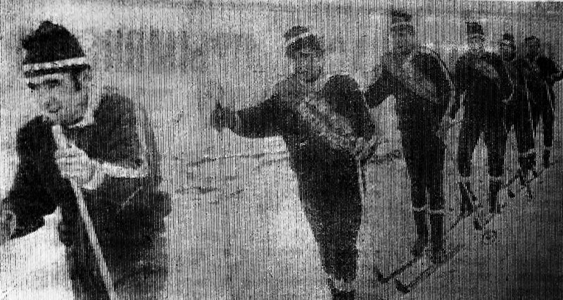 Пад фотаздымкам размешчана невялікая нататка, у якой гаворыцца, што «… з цэнтральнай плошчы Браслава стартавала зорная лыжная эстафета. Яна прысвячаецца XXIV з’езду КПСС, XXVII з’езду КПБ, XVII абласной партыйнай канферэнцыі. У прабегу прынялі ўдзел камсамольцы Друйскага сельскага прафесіянальна-тэхнічнага вучылішча № 39 А. Гембіцкі, сакратар камітэта камсамола (на здымку справа), Д. Белавус і іншыя.