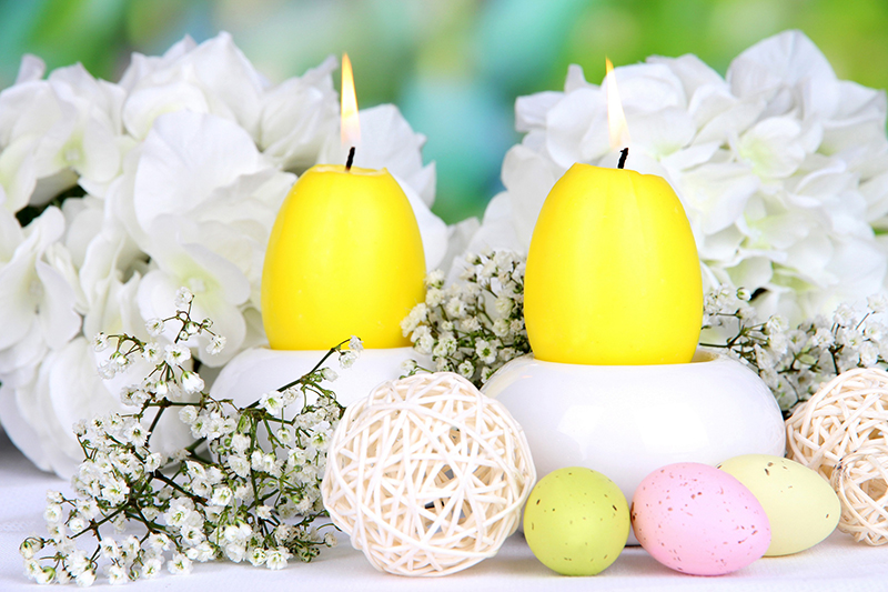 - в пасхальной корзине свечу размещать так, чтобы пламя не касалось полиэтилена или плетения корзины;