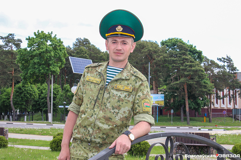 «Молодому пополнению пограничников в первую очередь прививаю любовь к Родине, а сам неимоверно горжусь тем, что охраняю границы своей страны», – говорит старший инспектор – начальник отделения заставы «Плюсы» Полоцкого погранотряда Олег Януль.