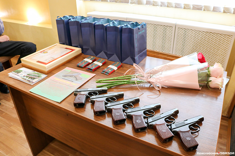 С напутственным словом к молодым милиционерам обратился начальник РОВД Александр Мяделко. Он отметил, что огневая мощь Браславского отдела внутренних дел возросла сразу в шесть раз, отрадно, что ребята выбрали для себя эту нелегкую, но почетную профессию, понимая всю ответственность выполнения служебного долга. Также он напомнил о бдительности при хранении оружия, бережном отношении к нему и пожелал легкой службы, в том числе чтобы штатный пистолет никогда не знал применения.