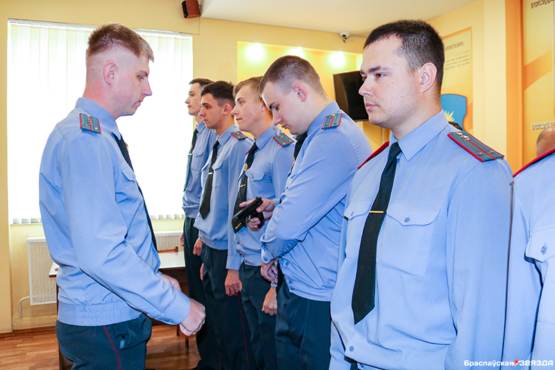 В Браславском РОВД прошла торжественная церемония вручения табельного оружия молодым сотрудникам