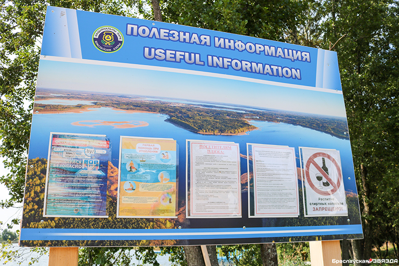 Так, в соответствии с информацией национального парка, пляж «Перетяг» функционирует согласно разрешению на открытие и работу места массового отдыха, выданного 13.05.2023 соответствующими контрольными органами. В настоящий момент недостатки, выявленные заместителем начальника Браславского РОЧС В. Опеченком, устранены. В частности, в месте причала прогулочного судна к пирсу установлены предупреждающие информационные указатели о запрете купания; спасательный пост в полной мере оснащен всей требуемой документацией; на пост выдано недостающее количество комплектов № 1 (общее количество составляет 3 шт.) и «конца Александрова» (общее количество – 2 шт.). Также на стенде, установленном на пляже, размещена вся необходимая информация, в том числе выписка из правил охраны жизни людей на водах, рекомендации отдыхающим о порядке купания, карта с указанием глубин, информация об оказании первой медицинской помощи пострадавшему (утопающему), список номеров телефонов спасательной станции, скорой медицинской помощи, ближайшей организации здравоохранения, милиции, распорядок дня ведомственного поста. На туристических стоянках и местах массового скопления (отдыха) граждан установлены информационные указатели, предупреждающие о запрете купания.