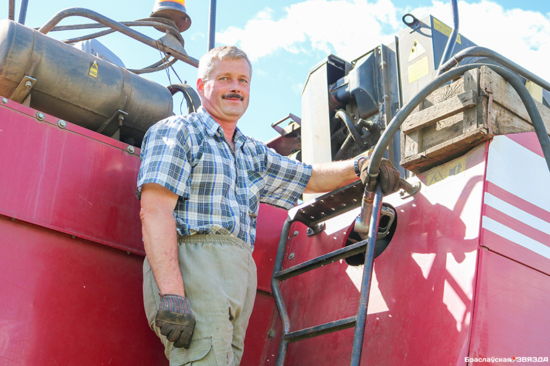 Кстати, сам В. Стельмаченок из деревни Друйск и когда-то работал в местном хозяйстве механизатором. Сейчас он электросварщик автотранспортного предприятия, но каждую горячую пору помогает «Друйскому»: весной пахал почву на МТЗ-3022, а во время кормозаготовки с ПИМом отвозил сенаж. Сегодня он комбайнер. Вот так и работает Владимир весь сельскохозяйственный сезон, и только поздней осенью приступает к своему непосредственному делу.