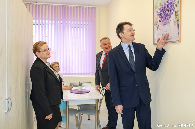 Улучшения лично оценил лидер Витебской областной организации Белорусского профсоюза работников здравоохранения Владимир Плыткевич. Вместе с заместителем председателя райисполкома Ольгой Величко он принял участие в открытии комнат приема пищи в физиотерапевтическом и неврологическом отделениях ЦРБ после капитального ремонта. Гости не могли не отметить комфорт, красоту и уют, созданные для местных медиков. Владимир Плыткевич, в частности, выразил благодарность главврачу ЦРБ Александру Макаревичу за такой подход в использовании спонсорской помощи, а также уверенность, что отремонтированные и оборудованные помещения улучшат условия и качество труда медицинских работников.