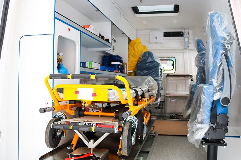 Заглянем в салон «скорого» микроавтобуса. Здесь по центру располагается приемное устройство с тележкой-каталкой, установлены три поворотных кресла для персонала скорой медицинской помощи. Подлокотники и сиденья при надобности складываются для экономии пространства. Есть стеллаж с антресолями для хранения и транспортировки медицинского оснащения. В автомобиле дополнительно установлена система кислородной разводки, кронштейны для проведения необходимых манипуляций и многое другое, что позволяет оказывать медпомощь, еще будучи в дороге.