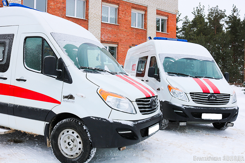 Вот они, красавицы-машины, стоят, слегка припорошенные снегом, подмигивают блестящими глазами-фарами, как бы намекая, что уже готовы выехать на свои первые вызовы. Две совершенно новенькие кареты скорой помощи на выходных прибыли на Браславщину, пополнив и разом обновив автопарк спецтехники центральной районной больницы.
