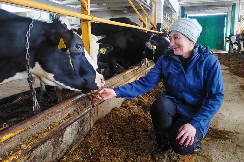 – Хорошо, что на работу и обратно возит спецтранспорт (прямо от дома до фермы). Я же стараюсь делать все от меня зависящее, чтобы был результат, продукция, — рассказывает А. Белова. — Сначала я была на этой ферме подменной, давала выходные дояркам. Доказала, что работать умею, теперь дали свою группу. Всего у меня 80 голов, из них 34 – дойного стада. За каждым животным нужен хороший уход: помыть, корма подбросить, подоить и не забыть приласкать. Все без исключения любят нежность, и коровы тоже. Они чувствуют мое настроение и соответственно реагируют на него.