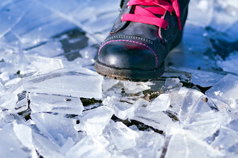 • если вы уже вышли на лед, но сомневаетесь в его прочности, то идти по нему нужно осторожно, скользящим шагом, мягко ставя ногу на всю ступню;