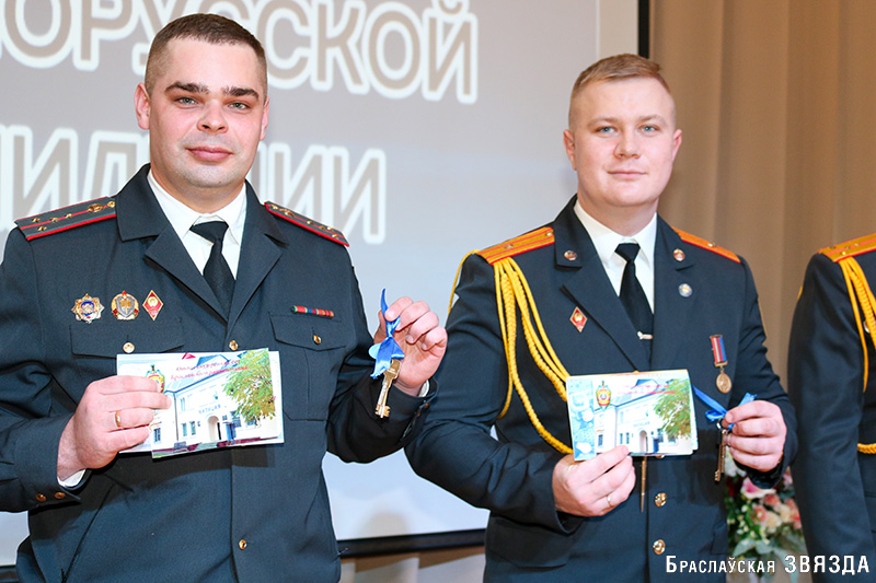 Эстафету поздравлений принял начальник Браславского РОВД Александр Мяделко. Ряд браславских милиционеров, а также ветераны райотдела были отмечены заслуженными наградами разного рода. Приятный же сюрприз был подготовлен для 11 правоохранителей: они получили ключи от арендных квартир в новом доме.
