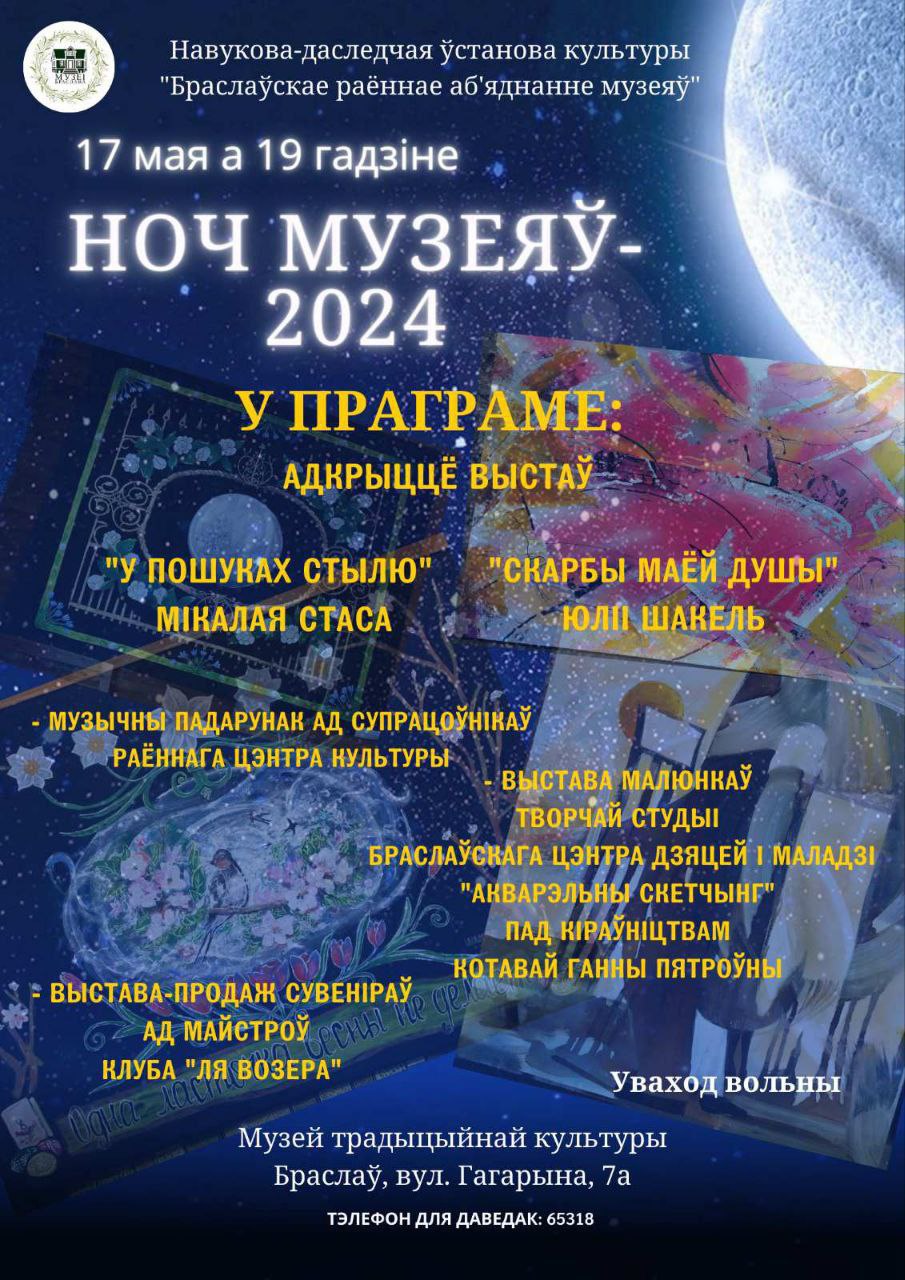 В пятницу, 17 мая, браславчане могут принять участие в традиционной акции «Ночь музеев». Мероприятие начнется в 19.00. В программе – открытие новых выставок, конкурс рисунков и концертная программа.