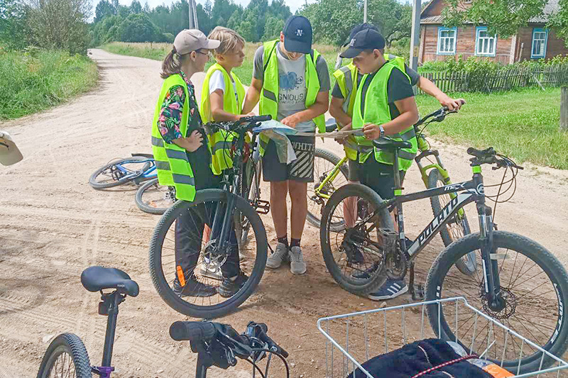 Подростки — любители велопоходов по родному краю – объединились в дружную команду и, очень точно, до мелочей, определив путь, за девять дней преодолели более 160 километров. Маршрут палаточного лагеря проходил по знаковым и памятным местам, связанным с событиями Великой Отечественной войны. Юные туристы посетили памятники погибшим в годы лихолетья жителям населенных пунктов Лабецкие, Далёкие, Богино, побывали на братской могиле советских воинов и партизан в г. п. Видзы, возложили цветы к монументу жертвам еврейского гетто, навели порядок на захоронении партизан в агр. Козяны и помолчали, отдавая дань памяти землякам, у мемориала на месте сожженной деревни Стайки.