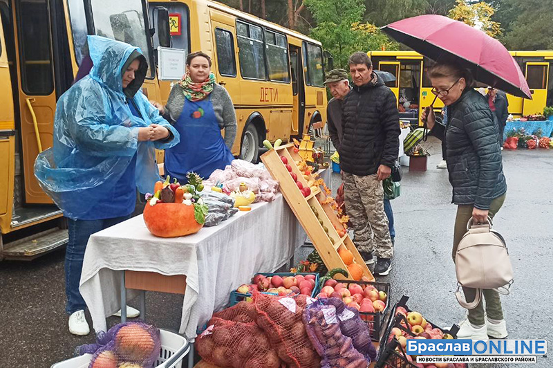 Школы также предлагали сельхозтовары со своих участков. Друяне продавали капусту — бело— и краснокочанную, цветную, кольраби и листовую. У Опсовской СШ можно было приобрести овощи, фасоль, яблоки и клубни тюльпанов. В СШ № 1 имени А. М. Жданова спросом пользовались саженцы малины, овощи и пирожки. Разнообразную продукцию представили и другие школы.