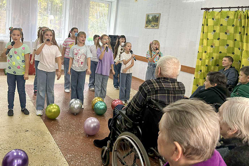 Мэту сустрэчы госці вызначылі адразу – падарыць цеплыню сваіх сэрцаў і шчырыя ўсмешкі, падзяліцца добрым настроем і павіншаваць насельнікаў установы са святамі, што адзначаюцца ў кастрычніку. І абавязкова ўручыць падарункі, падрыхтаваныя юнымі артыстамі. Імі сталі цудоўныя музычныя нумары, якія тэматычна ахоплівалі розныя моманты чалавечага жыцця. Хлопчыкі і дзяўчынкі спявалі, танцавалі і дарылі гледачам радасць сваімі талентамі. А сцэнічныя атрыбуты – рознакаляровыя надзіманыя шары, вялізныя бліскучыя «цукеркі» – стваралі па-сапраўднаму святочную атмасферу.