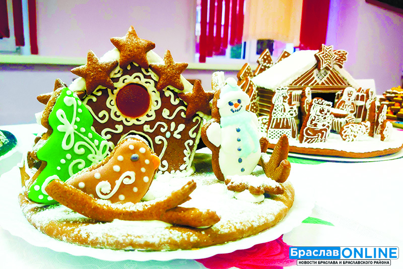 В день презентации экспозиции поделок было много: домики, изображения сказочных героев, елочки, печенье с пожеланиями и др. И все разные, оформленные со вкусом, объединенные сюжетом. Такие пряники хочется только рассматривать, пробовать их — жалко!