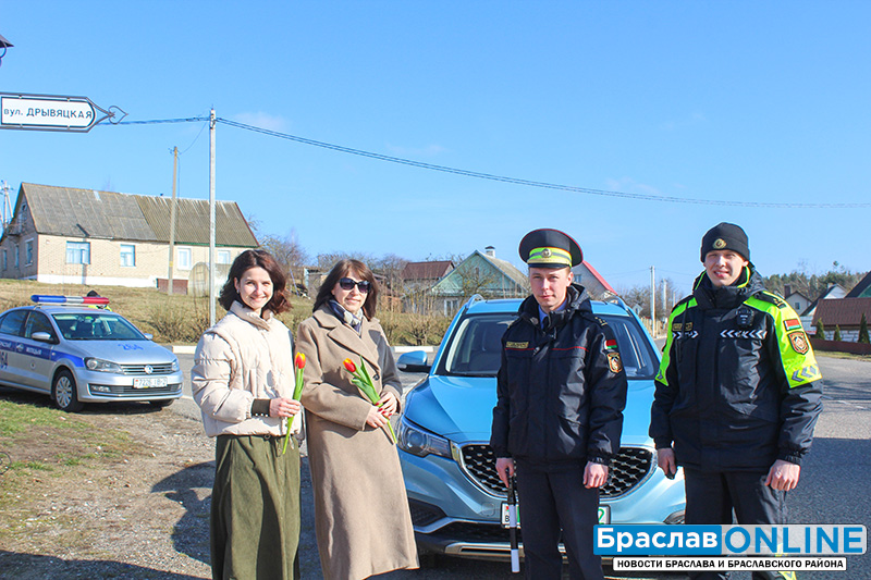 В Браславе сотрудники ГАИ по традиции поздравили автоледи с Днем женщин
