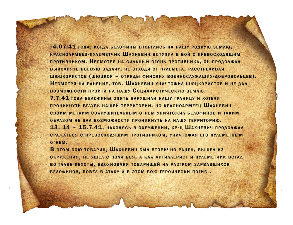 Самый трудный для страны 1941 год. Враг перешел в наступление по всей линии границ, главная задача обороны – не пропустить его, задержать, измотать. Недалеко от границы с Финляндией, союзницей Германии, ведет тяжелые бои советская 43-я стрелковая дивизия. В ее рядах – разведчик 73-го отдельного противотанкового дивизиона Константин Феликсович Шахневич, родившийся в местечке Опса. Вот как описаны его подвиги в наградном листе на представление к ордену Красной Звезды: