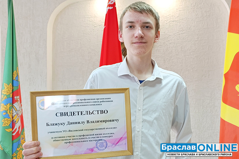 Учащийся Видзовского государственного колледжа Даниил Блажук в этом году удостоен специальной стипендии, которую учредил и выплачивает профсоюз работников агропромышленного комплекса.