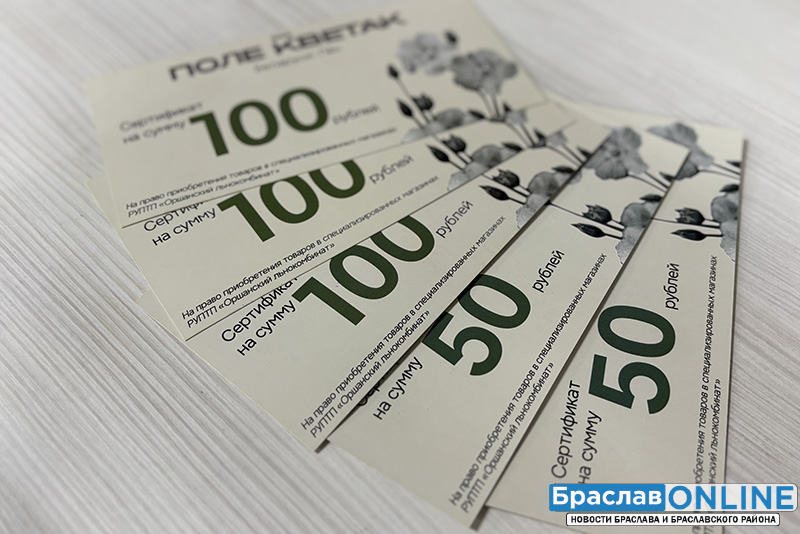 ✅ Магазин «Поле кветак» предлагает подарочные сертификаты на 50 и 100 рублей.
