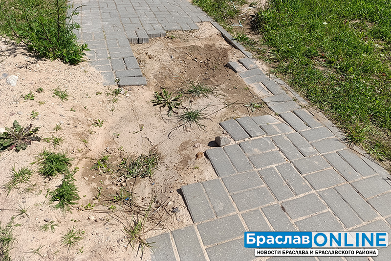 Новый микрорайон, красивые пятиэтажки и… абсолютно не соответствующие им пешеходные дорожки. Именно такая картина предстает перед глазами между домами № 43 и 44 по улице Октября в Браславе.