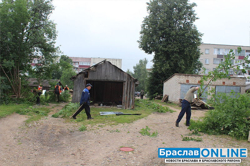 Как всегда, были сформированы в городе и сводные бригады. Пожалуй самая представительная команда мужчин с бензопилами, топорами, монтировками и другим инвентарем с помощью техники, предоставленной организациями в рамках районного субботника, занималась самым трудоемким делом — разбирала деревянные хозяйственные постройки по улице Садовой. В результате сплоченных действий в полдень на месте ветхих построек осталась ровная площадка, засыпанная песком, а также открылся вид на часть многоквартирной застройки, вдоль которой ежедневно идут на работу или в школу сотни браславчан и думают об обустроенной дорожке.