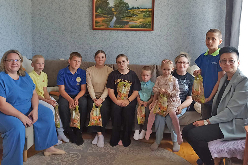 Еще подходя к дому, гости приятно удивились разительным изменениям в плане благоустройства: здесь благодаря инициативе отдела по образованию появился новый забор, дорожка вокруг дома и во дворе, оригинальная клумба и т. д. Много эмоций вызвала и встреча с большим семейством – радостная и душевная. Мальчишки и девчонки с гордостью поделились своими достижениями в школе: например, Ваня закончил год со средним баллом 8,1, Миша – 8,4, Полина уже перешла на 2-й курс витебского колледжа, ей нравится осваивать новые блюда (девушка учится на повара, лето же провела здесь, в месте, которое считает настоящим домом). Также ребята рассказали о летних событиях: как отдыхали, как помогали взрослым по хозяйству – те сами трудолюбивые и учат этому детей.
