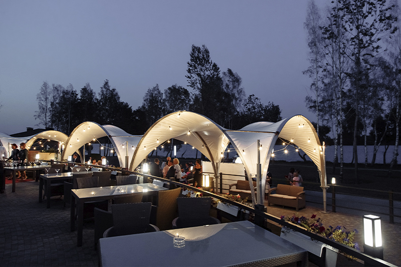 Благодаря мобильности шатров и их аккуратному внешнему виду аренда шатров в Минске пользуется спросом не только у организаторов мероприятий, но и у владельцев сезонных площадок. Конструкции можно быстро установить в начале сезона и демонтировать осенью без ущерба для ландшафта.