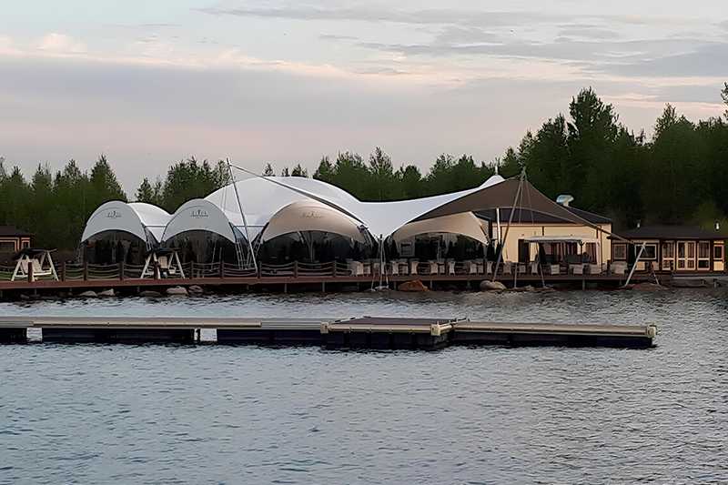 Шатры НОВОТЕНТ часто используются именно как летние террасы – у кафе, зон отдыха и пляжных баров. Это удобный способ расширить площадь, добавить тень и создать уютное пространство прямо у воды.